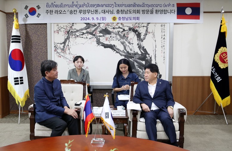 주한 라오스 대사 일행의 이번 방문은 충남도의 공적 지원에 대한 감사 인사와 함께 충남도의회와의 교류 협력 관계 구축을 위해 마련됐다. 이날 참석자들은 환영 인사 및 교류 협력 의향 전달 등 양 기관의 우호 협력 관계 발전 방안을 논의했다.