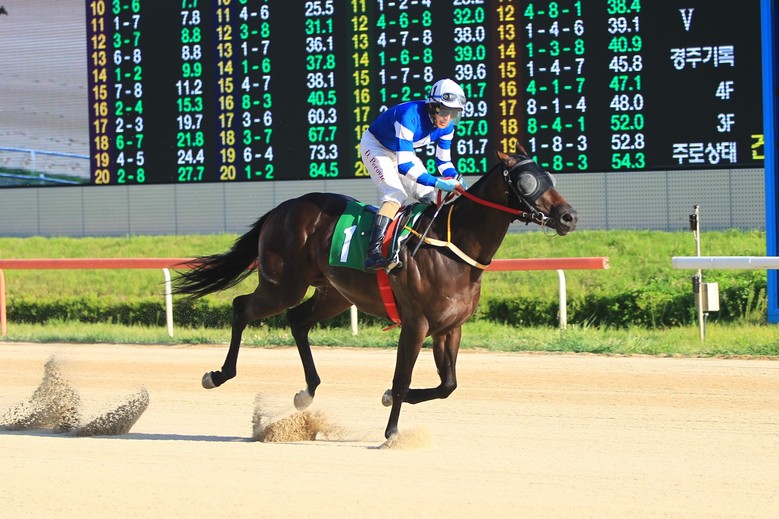 데뷔 후 출전한 3번의 경주에서 모두 1, 2착으로 들어오며 복승률 100%을 기록하고 있다. 쥬버나일 시리즈 제1관문에는 출전하지 않았지만, 이번 출전마 중 가장 높은 레이팅을 보유하고 있어, 2세 기대주임은 의심의 여지가 없다. 3번의 경주 모두 김용근 기수와 호흡을 맞춰 좋은 성적을 거뒀는데, 다만 이 중 1300m, 1000m 경주는 우승한 반면, 1200m 경주에서는 줄곧 선두로 달리다 막판에 밀려 준우승에 그친 경주전개가 살짝 아쉬웠다. 경쟁자인 ‘한강에이스’나 ‘쾌향’ 대비 1200m 기록이 떨어지는 것도 아쉬운 부분이다. 이번 대회에서는 마지막까지 집중력을 놓치지 않고 선두를 유지할 수 있을지 지켜보자.