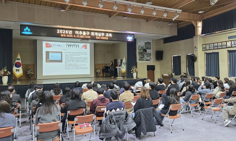[미추홀구 세계타임즈=심하린 기자] 인천 미추홀구(구청장 이영훈)는 27일 구청 대회의실에서 회계 담당 공무원 100여 명을 대상으로 업무 능력 향상과 전문성 강화를 위한 ‘2026년 회계실무 교육’을 진행했다.