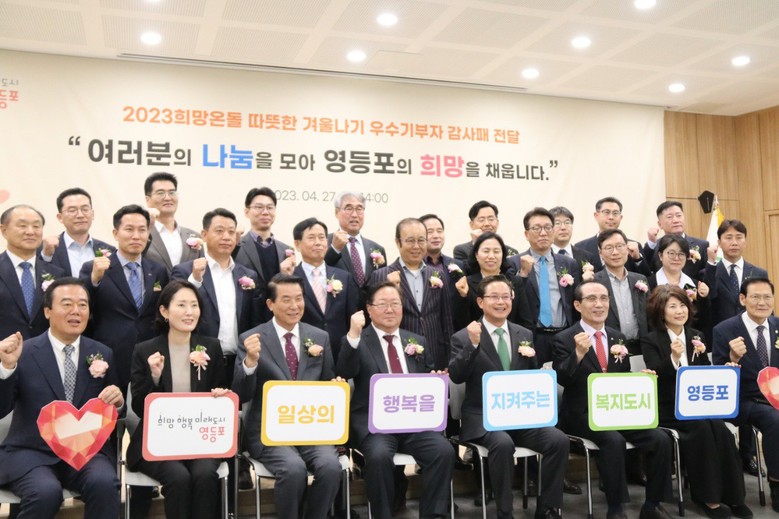 이날 전달식에는 어려운 이웃들을 위해 기부를 한 우수 기부자들과 최호권 영등포구청장이 참석하였으며 구청 별관에서는 먼저 “2023희망온돌 따뜻한 겨울나기” 사업의 기부 현황 보고와 감사패 전달식을 진행하고 기념사진 촬영시간을 가졌다.