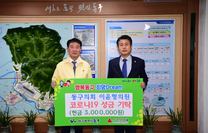 [동구=세계타임즈 한성국 기자] 동구의회 경제복지위원회 이윤형 의원은 지난 3일 코로나19 극복을 위해 사용해 달라며, 동구청에 성금 300만원을 기탁하였다.