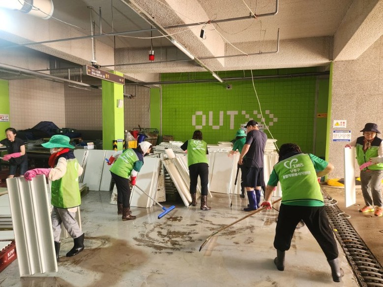 봉사에는 남동구 통합자원봉사지원단 소속 자원봉사자 40명이 참여해 계양구 일대 마트와 상가를 대상으로 ▲진흙 제거 및 소독 ▲폐기물 적환장 처리 등 침수 피해 복구를 도왔다.