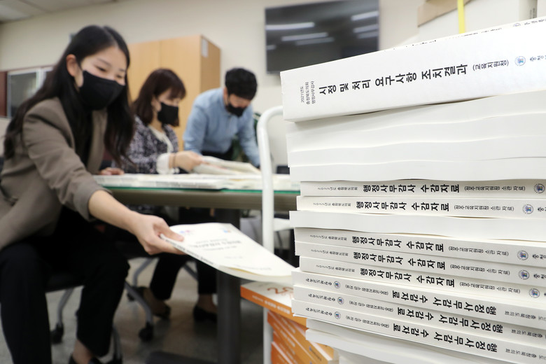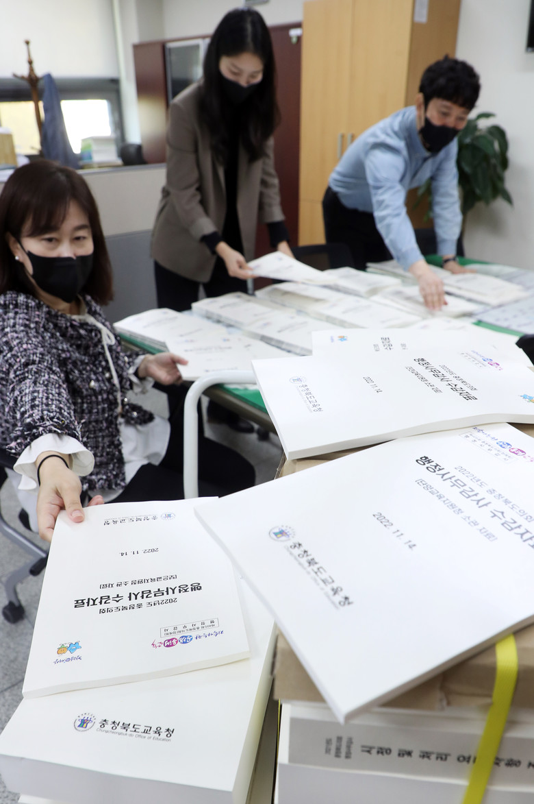 [충북 세계타임즈=이현진 기자] 2022년도 행정사무감사를 앞둔 2일 충북도의회사무처 직원들이 집행기관에서 보내온 자료들을 정리하며 분주한 모습을 보이고 있다,/충북도의회 제공