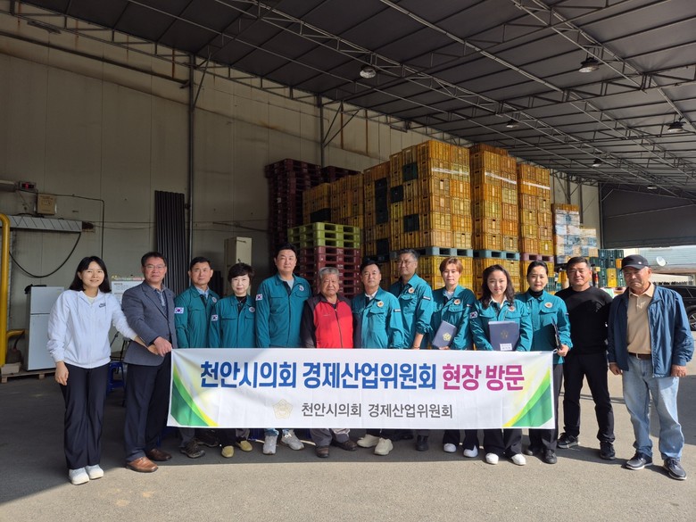경제산업위원회 현장방문 대상지는 9개소로, 1일차에는 ▲안양골 영농조합(배 영농조합) ▲농수산물도매시장관리사업소 ▲스마트팜 재배농가(만나농장) ▲농업용 냉난방기 설치농가(딸기노리터) ▲하늘그린 천안포도연구회(씨알농원), 2일차에는 ▲제3일반산업단지 폐수처리장 ▲성정시장 ▲그린스타트업타운 ▲천안시 동물보호센터이다.