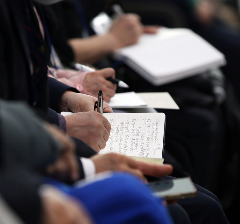 11일 열린 신천지 청주교회에서 계시실상 성취증거 신천지 말씀대성회에 참석한 목회자들이 강연 내용을 필기하고 있다