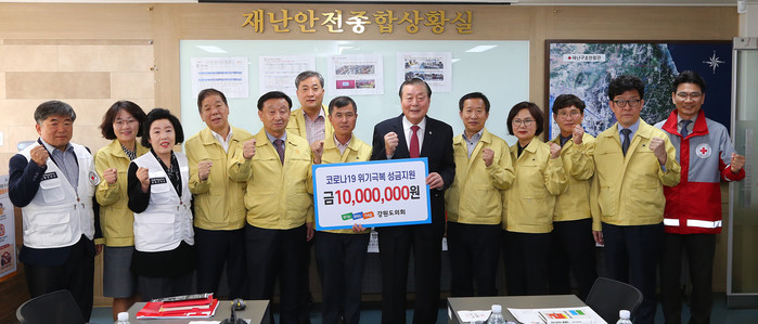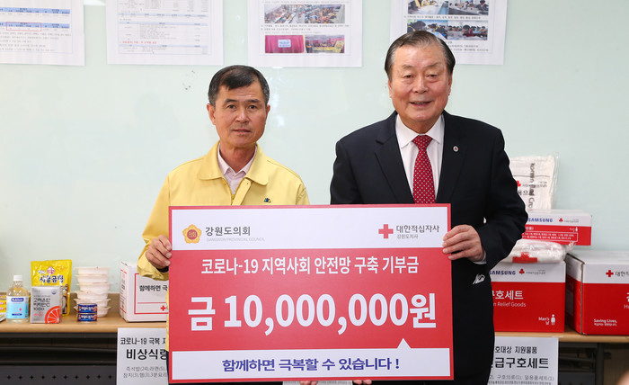 [강원도=세계타임즈 김민석 기자] 강원도의회(의장 한금석)는 30일 대한적십자사 강원지사에 코로나19 피해 극복을 위해 도의원들이 자율적으로 모금한 성금 1,000만원을 전달했다.
