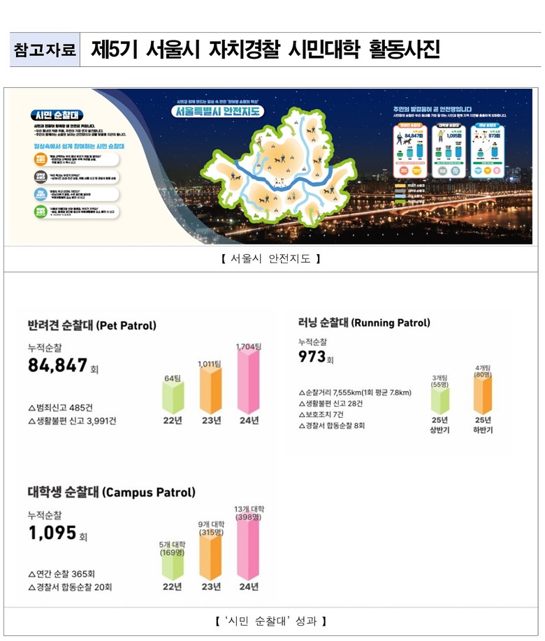 - 전국 최초 반려견·러닝·대학생 순찰대 도입 등 참여형 치안 모델 소개