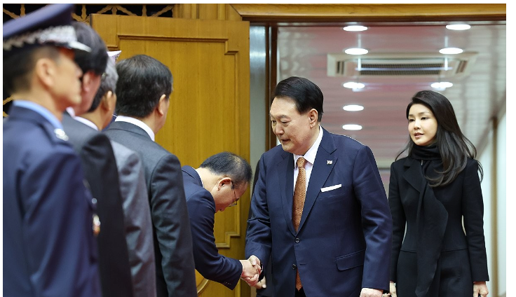 윤재옥 원내대표와 인사하는 윤석열 대통령