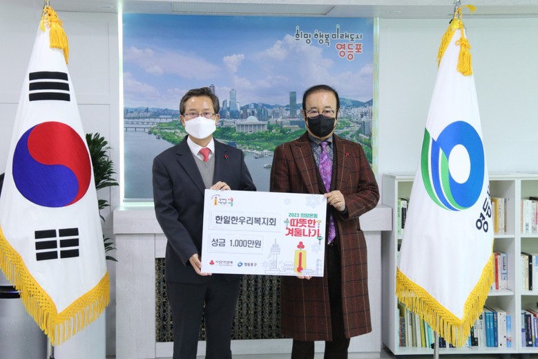 [세계타임즈 백진욱 기자] 한·일 한우리 복지회(서울시 회장 홍성열)가 12월 14일 영등포구청에서 영등포구가 진행중인 ‘2023 따뜻한 겨울나기 사업’에 기부함으로써 사업에 참여했다.