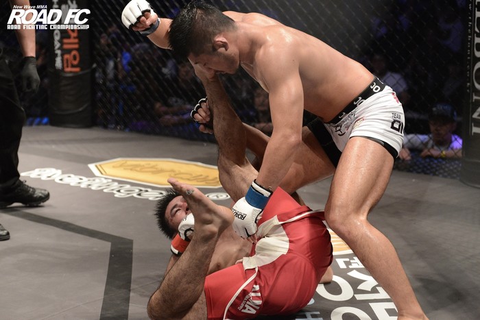 그 무기는 ‘엘보우’였다. 이때까지만 하더라도 ROAD FC 공식 룰에는 수평 엘보우가 가능했다. 물론 수직 엘보우는 반칙이었다.