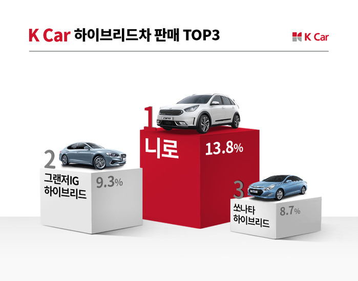 올해 판매된 하이브리드 차량의 모델별 판매 비중을 살펴본 결과, 기아 니로가 13.8%로 가장 높은 점유율을 나타냈다. 소형SUV 니로는 합리적인 가격에 공간 활용성이 좋아 인기가 높은 것으로 분석된다. 케이카 사이트에서 1,500만원대부터 구매 가능하다. 뒤이어 현대 그랜저IG 하이브리드가 9.3%로 2위, 현대 쏘나타 하이브리드가 8.7%로 3위를 기록했다.