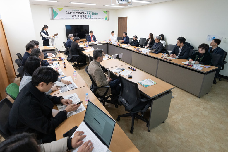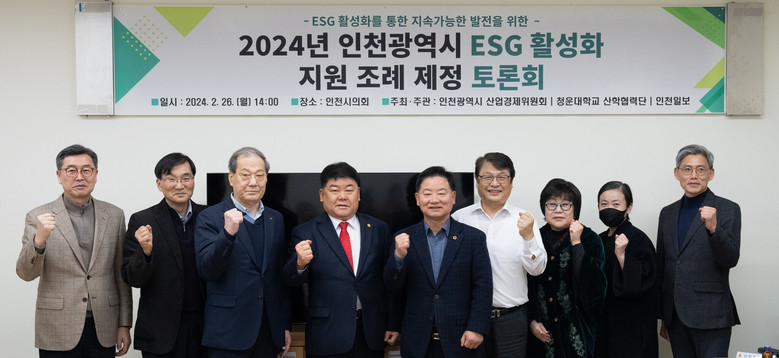 인천광역시의회 산업경제위원회는 26일 시의회 별관 4층 세미나실에서 인천시 사회적경제지원센터와 함께 ‘2024년 인천광역시 ESG 활성화 지원 조례 제정 토론회’를 개최했다.