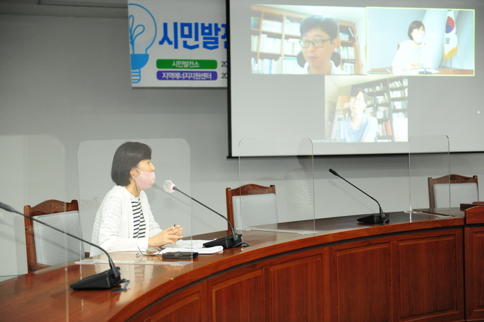 [광주=세계타임즈 손권일 기자] 광주광역시의회 장연주 시의원은 9월1일 시의회 5층 예산결산특별위원회 회의실에서 '에너지 전환 시민참여 활성화 방안 모색 토론회'를 참여자들과 화상회의로 진행했다.