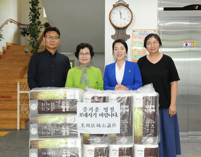 [광주=세계타임즈 손권일 기자] 광주광역시의회 임미란 부의장은 추석 명절을 앞둔 9월9일 남구 행암동에 위치한 전남 성노원을 방문해 위문품을 전달하고 소통의 시간을 가졌다