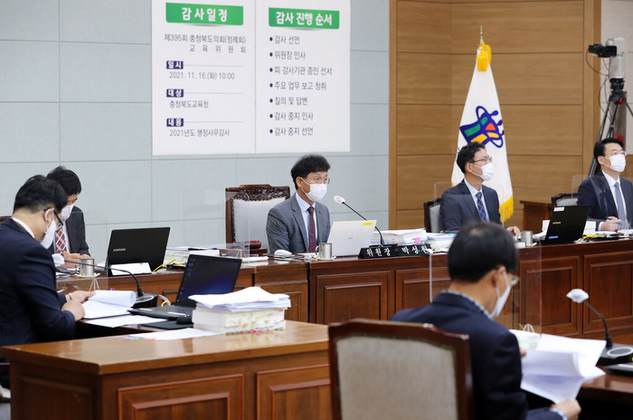 [충북=세계타임즈 이현진 기자] 충북도의회 교육위원회(위원장 박성원)는 16일 충청북도교육청 화합관에서 충청북도교육청을 대상으로 2021년도 행정사무감사를 실시했다.