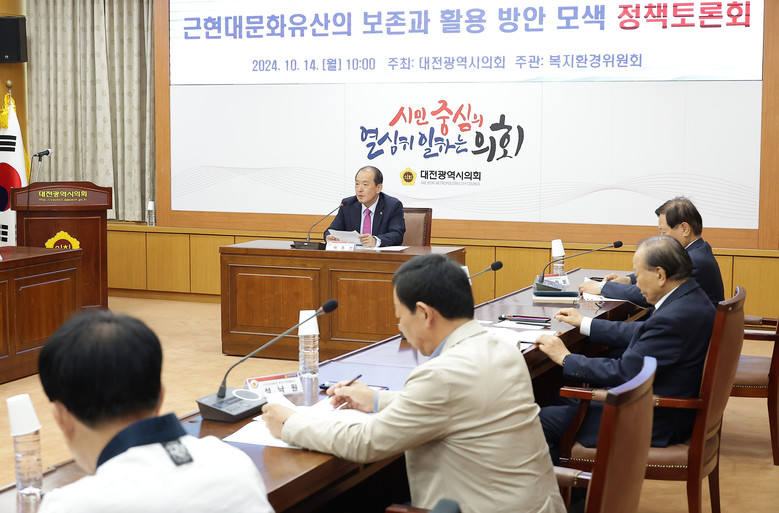 [대전 세계타임즈=이채봉 기자] 대전시의회는 14일 10시 의회 3층 소통실에서 ‘근현대문화유산의 보존과 활용 방안 모색을 위한 정책토론회’를 개최했다.