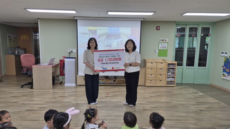 [계양구 세계타임즈=심하린 기자] 인천 계양구 계산1동(동장 김희수)는 20일 구립은행나무어린이집(원장 전태자)이 ‘시장놀이’ 프로그램을 통해 얻은 수익금 1,133,000원을 계산1동 복지사업에 지정 기탁했다고 밝혔다. 이번 기부는 지난해에 이어 2년 연속 이어졌다.