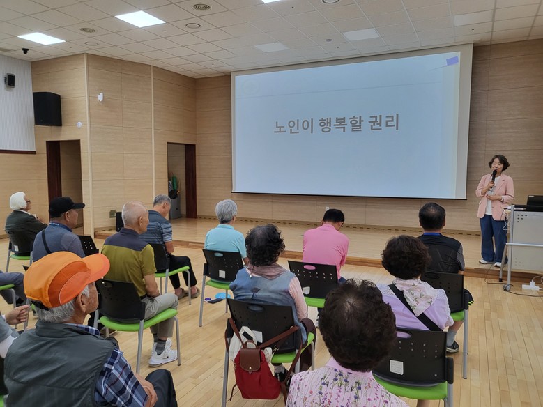 교육에서는 헌법과 세계인권선언을 통해 인권의 개념을 이해하고, ‘노인이 행복할 권리’와 ‘존중 케어’에 대한 설명이 이어졌다. 또한 일상에서 마주할 수 있는 다양한 인권침해 사례와 대처 방법을 소개하고, 경험을 나누는 참여형 활동도 함께 진행돼 어르신들의 공감과 호응을 이끌어냈다.