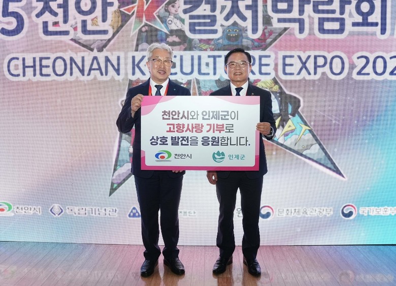 [인제군 세계타임즈=김민석 기자] 인제군과 천안시가 6월 4일 천안시 독립기념관에서 고향사랑기부금 상호 기부금 전달식을 진행했다.