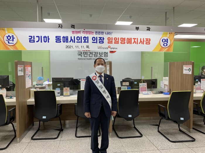 이날 김기하 동해시의회 의장은 하루 동안 지사장과 같은 업무를 소화하며건강보험관련 시민들의 불편사항에 대해 살피고 민원실을 방문한 민원인과 코로나19 지원업무 등에 최선을 다하고 있는 직원들과도 소통하는 시간을 가졌다.