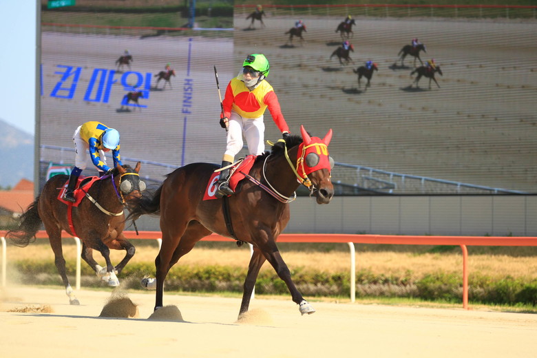 데뷔 이후 꾸준히 우승을 쌓아 지금까지 총 8경주 중 5승이라는 막강한 전적을 보유하고 있다. 특히 올해 트리플 크라운 시리즈를 미리 가늠할 수 있었던 3월 ‘스포츠서울배’ 대상경주에서 단독 선두로 우승을 차지하며 일찌감치 3세마 기대주로 눈도장을 찍었다. 지난 달 부경에서 개최된 ‘KRA컵 마일’에서는 ‘컴플리트밸류’와의 선행 다툼에서 체력을 소진하며 부산경남의 ‘캡틴양키’에 우승을 내주었다. 홈그라운드에서 펼쳐지는 이번 더비에서는 ‘승부사’가 뒷심을 발휘하는 승부수를 띄울 수 있을지 기대해보자.