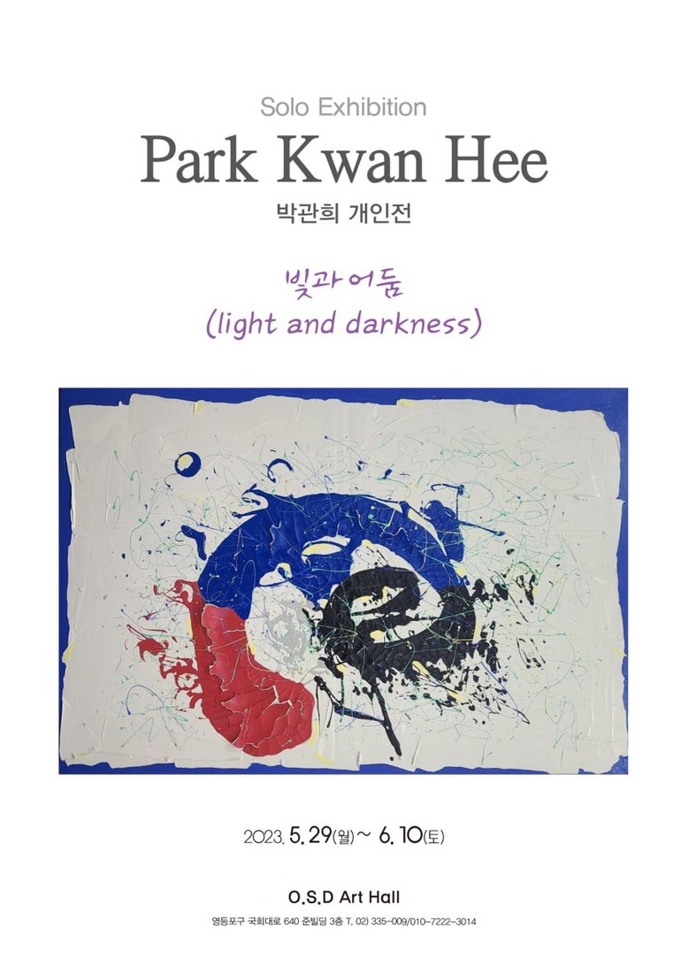 [세계타임즈 백진욱 기자] 박관희 서양화가 빛과 어둠(light and darkness)이란 제목으로 5월 29(월)부터 6월10일(토)까지 영등포구 국회대로 640 준빌딩 3층에 위치한 O.S.D. ART Hall에서 개인 전시회를 개최한다.