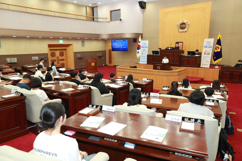 청소년 의회교실은 학생들이 1일 도의원이 되어 의회 운영에 대한 이해를 높이는 교육 프로그램으로, 무기명 투표를 통한 의장 선출, 안건 심의·의결, 2분 자유발언 등 의정활동을 체험했다.