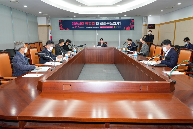 7일, 전북도의회 서난이(전주9)의원이 의회 세미나실에서 개최한 토론회는 ‘여순사건 특별법, 왜 전라북도인가?’라는 주제로 진상규명과 희생자 명예회복을 위해 필요한 사항을 전문가 및 관계 공무원들과 논의하는 자리를 가졌고 여순항쟁을 주제로 한 박금만 화가의 전시회도 동시에 개최했다.