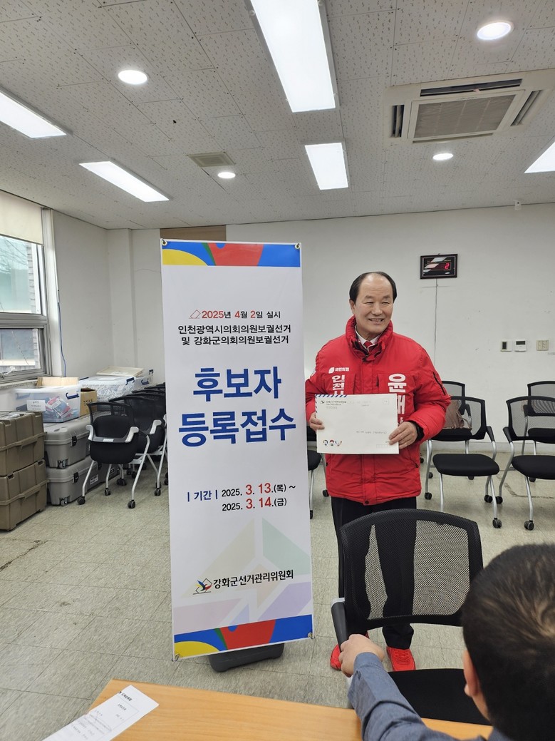 [강화군 세계타임즈=심하린 기자] 윤재상 국민의힘 인천시의원 후보는 13일(목) 오전 강화군선거관리위원회에 후보 등록을 했다.