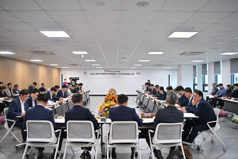 김태흠 지사와 가세로 태안군수, 오진기 조직위 사무총장, 박람회 자문위원 등 60여 명이 참석한 가운데 연 이날 보고회는 조직위와 태안군, 도 실국 등의 준비 상황 보고, 토론 순으로 진행했다.