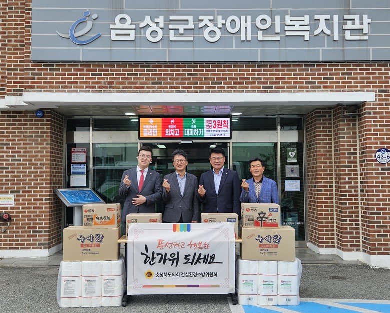 [충북 세계타임즈=이현진 기자] 충북도의회 건설환경소방위원회(위원장 이태훈, 괴산)는 추석 명절을 앞두고 사회복지시설을 찾아 위문품을 전달하며 이웃사랑을 실천했다.