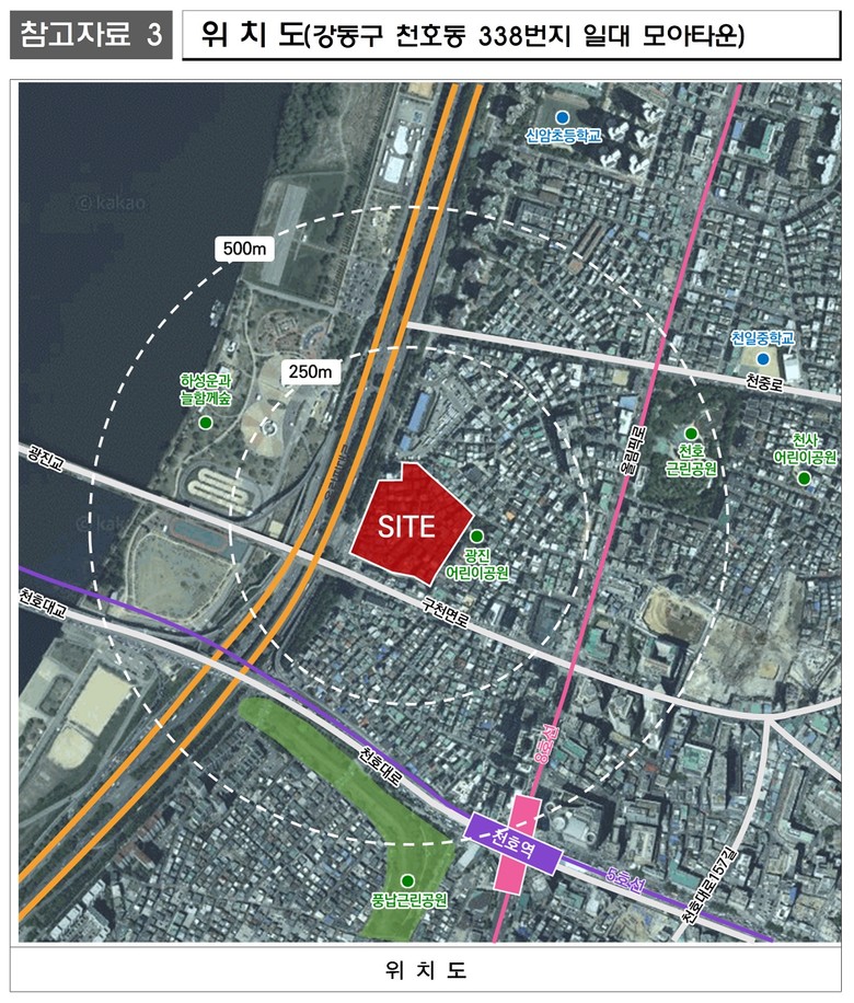 ② 강동 천호동 338번지 일대 모아타운, 한강변 입지·그린웨이 조성 586세대 공급