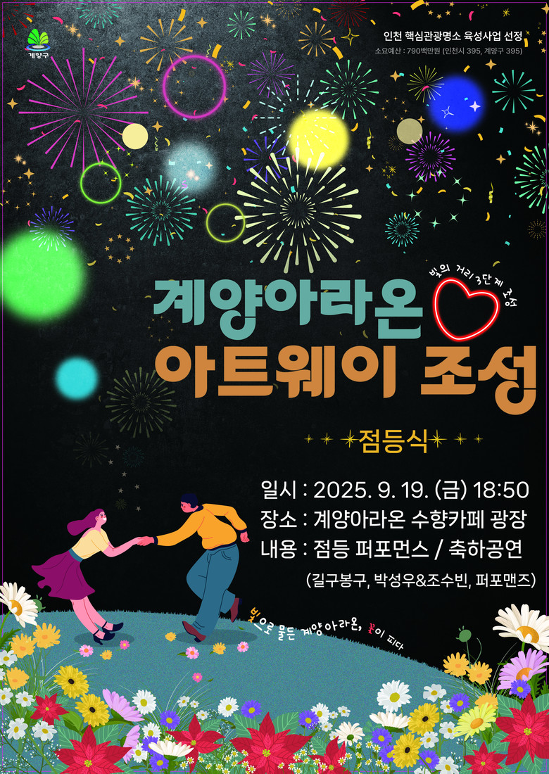- 빛의 거리 1·2단계 잇는 마지막 완성... 계양대교 중심 ‘빛의 명소’ 탄생 - [계양구 세계타임즈=심하린 기자] 인천광역시 계양구(구청장 윤환)는 오는 9월 19일(금) 오후 6시 50분, 계양아라온 수향카페 광장에서 ‘계양아라온 아트웨이(빛의거리 3단계)’ 점등식을 개최한다고 밝혔다.