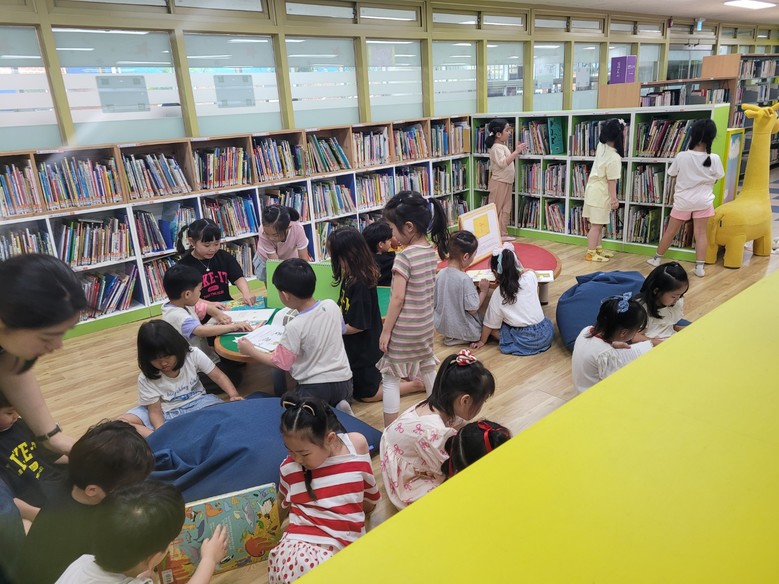6월과 7월 유초이음활동의 시작은 한가람초등학교 도서관에서 이루어졌다. 1학년 학생들은 유치원 동생들을 위해 직접 책을 골라 읽어주는 등 '작은 선생님' 역할을 톡톡히 해냈다. 유치원 원아들은 초등학교 도서관이라는 새로운 공간에서 형, 누나들과 함께 책을 읽으며 즐거운 시간을 보냈다. 이러한 독서 활동은 초등학교 연계 교육활동의 일환으로, 아이들의 독서 습관 형성과 학교 적응에 긍정적인 영향을 미칠 것으로 기대된다 .