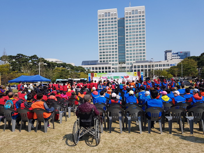 [세계타임즈 이장성 기자] 다양한 봉사를 꾸준히 하고 있는 SNS 대전시 봉사단체 사랑의 사다리 밴드(리더 이정제)는 12일 오전10시, 대전시청앞 보라매공원에서 보문장애인자립생활센터(센터장 신인수) 주관으로 진행된 제3회 BOM장애인예체능대회에서 봉사를 통해서 우리 사회의 따뜻한 사랑을 실천하였다.