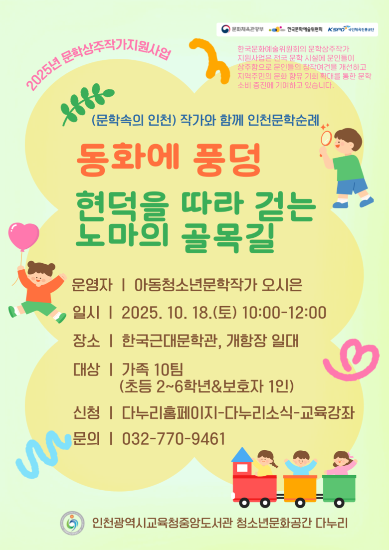 이번 프로그램에서는 동화작가 현덕의 작품 배경지인 개항장 일대를 탐방하며, 참여 학생들은 사방치기, 제기차기 등 전통 놀이를 체험하고 ‘노마에게 띄우는 편지’를 작성하며 동화 속 시대와 감성을 체험할 수 있다.