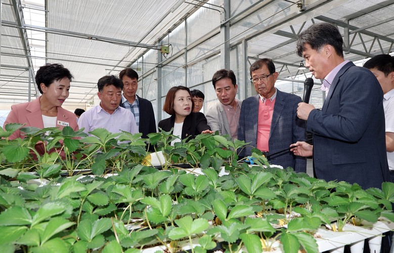 이어 방문한 논산 농업기술센터에서는 스마트농업 복합단지 조성 현황을 점검했다. 위원들은 최첨단 시설원예 사업 현장과 농업인‧귀농인‧청년농업인을 위한 전문기술교육장을 시찰하고, 12월 준공을 앞둔 복합단지의 추진 현황과 주요작물 원예단지 운영계획에 대해 의견을 나눴다.