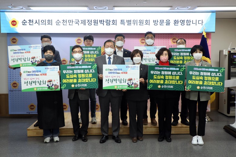 이날 세종시의회 유인호 의회운영위원장이 순천시의회 의원들을 접견했으며 “세종시에서 16일까지 열리는 2022정원산업박람회에 이어 내년 순천만국제정원박람회의 성공적인 행사 개최를 기원한다”고 전했다.