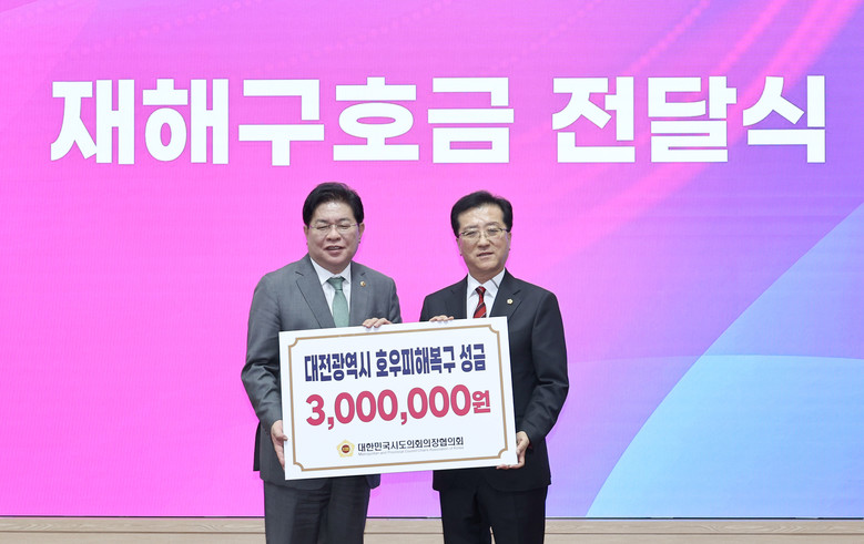 이 자리에서 대전시의회는 대한민국시도의회의장협의회로부터 2024년 호우피해 재난구호금 300만원을 지원 받았으며, 이는 사회복지공동모금회로 전달하여 지난 7월 호우피해를 입은 지역의 피해 복구와 지원을 위해 사용될 예정이다.