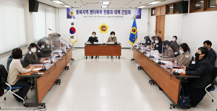 이 자리에는 박문희 의장, 이숙애(청주1) 의원, 충북젠더폭력방지협의회 관계자 등 10여명이 참석해 충북지역의 젠더폭력 현황과 문제점을 공유하고 여성폭력방지시설의 처우개선 등에 대해 논의했다.