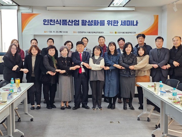 인천광역시의회 의원 연구단체인 ‘인천식품진흥정책연구회(대표의원 박판순)’는 23일 인천시식품산업육성지원센터에서 박판순(국·비례) 대표의원을 비롯해 이봉락(국·미추홀3)·박창호(국·비례) 의원, 식품 관련 협회장, 전문가, 관계공무원 등이 참석한 가운데 ‘인천식품산업 활성화를 위한 세미나’를 개최했다.