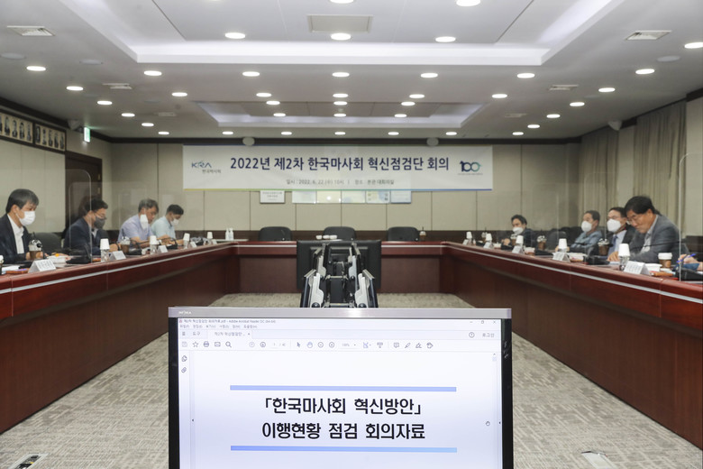 [세계타임즈 = 심하린 기자] 한국마사회(회장 정기환)는 6월 22일 경마참여단체 대표, 각계 전문가들과 함께 혁신 이행상황을 점검하는 혁신점검회의를 개최했다.