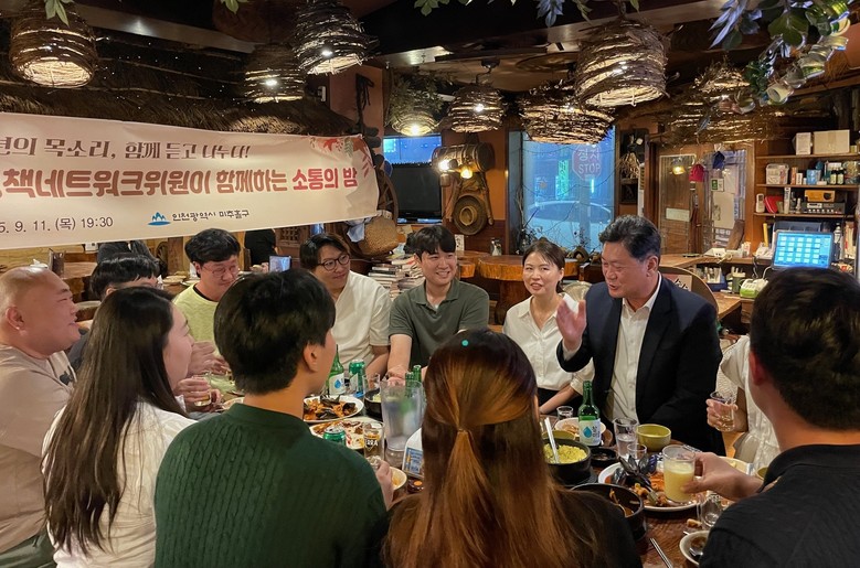 참석한 한 위원은 “청년정책에 깊은 관심을 가지고, 소통의 자리를 직접 마련해 주신 이영훈 구청장님께 감사드린다.”라며, “앞으로도 미추홀구와 청년들 간의 긴밀한 소통을 통해 청년들이 더욱더 살기 좋은 곳으로 지역사회가 발전하길 바란다.”라고 소감을 전했다.