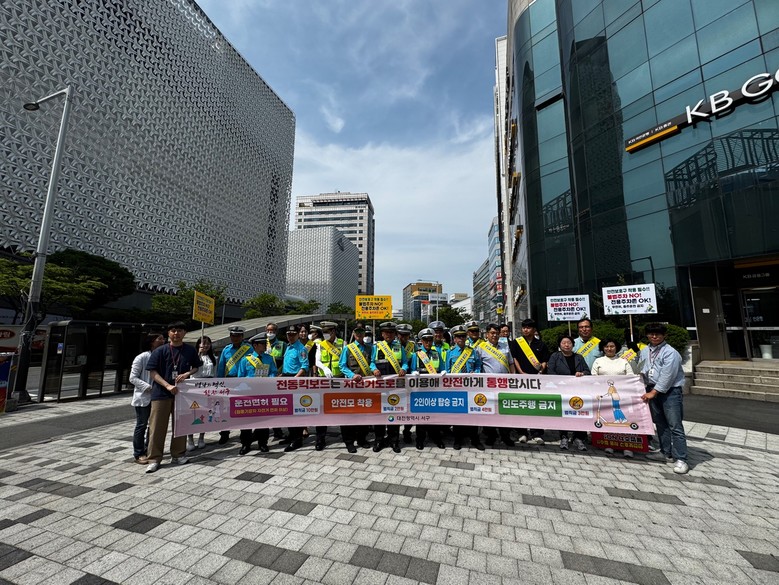 [서구 세계타임즈=이채봉 기자] 대전 서구(구청장 서철모)는 이달 14일부터 15일까지 둔산동·관저동 일대에서 올바른 개인형이동장치(PM) 이용 문화 확산을 위해 ‘개인형이동장치 안전하게 이용하기’ 민·관·경 합동단속 및 캠페인을 진행했다.