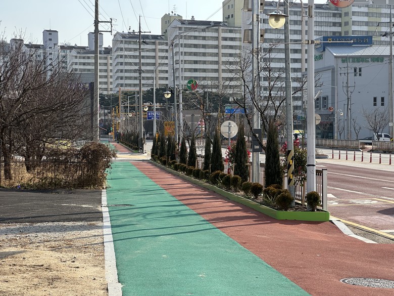 이번 사업에서는 기존 도로변 화단을 확장 설치하여 겨울철 제설작업 시 살포되는 염화칼슘으로 인한 수목 피해를 최소화하고, 통학로와 차도를 구분하는 완충녹지 기능을 강화하였다. 이를 통해 어린이 교통사고 예방은 물론, 보행환경의 안전성과 쾌적성이 크게 향상되었다.