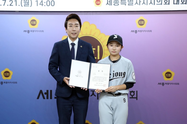 [세종 세계타임즈=이채봉 기자] 세종특별자치시의회(의장 임채성)는 21일 세종공공스포츠클럽 야구 전문선수반 유소년 선수들을 초청해 우수선수상을 수여하며 전국 유소년 야구대회 우승의 성과를 함께 축하하는 자리를 마련했다.