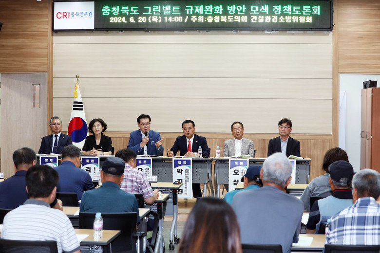 [충북 세계타임즈=이현진 기자] 충북도의회 건설환경소방위원회는 20일 충북연구원에서 ‘충청북도 그린벨트 규제 완화 방안 모색에 관한 정책토론회’를 개최했다.