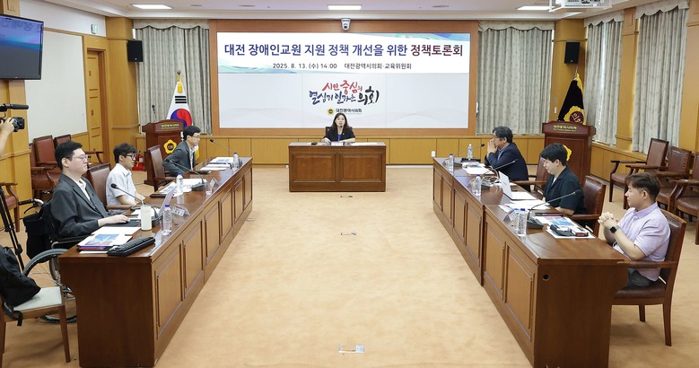 [대전 세계타임즈=이채봉 기자] 대전시의회는 13일 시의회 소통실에서 김민숙 의원(더불어민주당, 비례대표) 주재로 ‘대전 장애인교원 지원 정책 개선을 위한 정책토론회'를 개최했다.