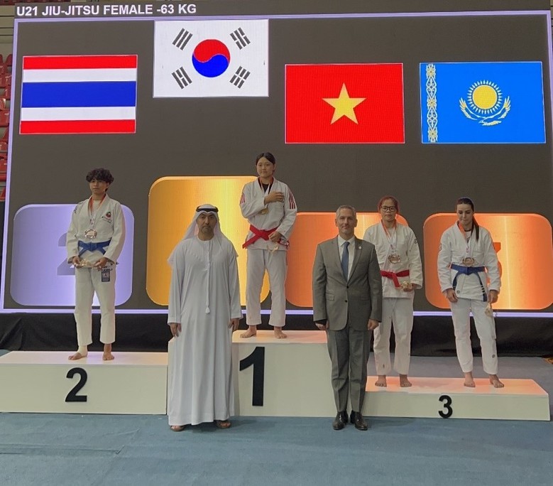 이연지 선수는 지난 5월 26일, 요르단 암만에서 열린 ‘2025 아시아 주짓수 선수권대회’ U21 여자 -63kg 체급 경기에 출전해 총 10명의 경쟁자들을 제치고 당당히 금메달을 목에 걸었다. 이번 대회에는 아시아 12개국에서 수백 명의 선수들이 출전해 치열한 경쟁을 펼쳤다.