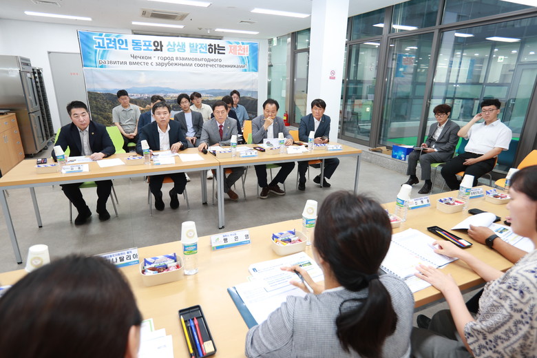 위원회는 제천시 재외동포지원센터를 방문해 센터 현황, 사업추진 경과 및 기대효과 등에 대한 설명을 들었다. 이어진 이주 고려인들과의 간담회에서는 고려인의 애로사항과 건의사항을 청취하고, 지원센터에 입주한 고려인 거주시설 등을 둘러봤다.